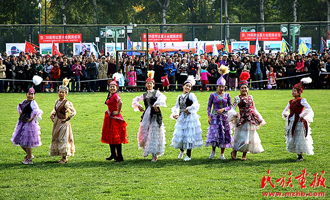 中央民族大學(xué)哈薩克語言文學(xué)系學(xué)生表演哈薩克族舞蹈