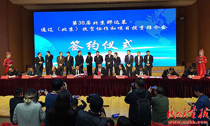 第38屆北京那達(dá)慕通遼(北京)扶貧協(xié)作和項(xiàng)目投資推介會簽約儀式(王金梅 攝影)