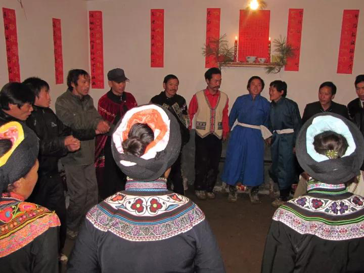 3、源自于宗法禮教。在阿買懇的唱詞中,有阿買懇是君長制定的規(guī)矩之說,根據(jù)彝族典籍文獻記載和民間傳說,反映古代彝族水西君長家和烏撒君長聯(lián)姻嫁娶時,都興阿買懇,說明阿買懇是君長興起這一說法是由根據(jù)的。彝族是一個很重視宗法禮教的民族,各種禮儀習俗和規(guī)章制度比較細密而嚴格,作為人生重大禮儀的婚儀,必然有許多規(guī)矩,阿買懇的幾十項程序性對答吟誦,就足以說明了這一點。但它也并非完全是“君長制定的規(guī)矩”,它更多的是百姓的禮俗和情趣,因為,在阿買懇唱詞中反映的勞動場景的內容很多。實事求是的講,阿買懇應該是由君長所倡導和認可,由廣大彝族民眾興起,經(jīng)布摩和民間歌師共同創(chuàng)作、經(jīng)民眾在演唱過程中反復修訂而形成的。