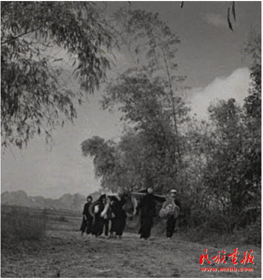壯族青年男女們帶著口糧成群結隊地前來參加歌圩
