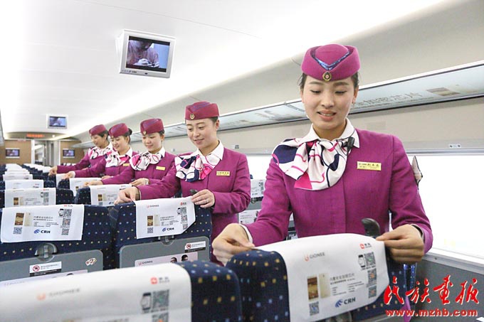 擔(dān)任貴陽(yáng)至昆明高鐵值乘任務(wù)的“動(dòng)妹”們進(jìn)行系列安全演練和培訓(xùn),確保為旅客提供優(yōu)質(zhì)服務(wù)(張貴忠 攝影)