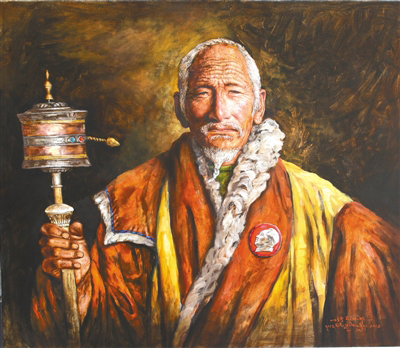 “我曾遇到過民主改革后重獲新生的翻身農(nóng)奴,他們的經(jīng)歷非??部?。對于他們來說,對給予他們自由的毛主席有著很深的感情。老一輩翻身農(nóng)奴為表達感激之情,便有了佩戴毛主席像章每天做祈禱的人?!彼髀峄貞浿敵趵L畫《永遠的懷念》這幅作品時的情景。