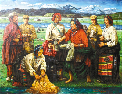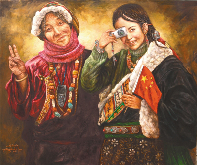 “以前畫畫時,對自己的最高要求就是畫得要逼真,把油畫畫得像一幅放大了的照片,而現(xiàn)在關注的是如何畫出能體現(xiàn)當代的畫面。西藏的美是無窮無盡的,我就想用繪畫的方式窮盡一生去追求,展現(xiàn)大美西藏?!比缃竦乃髀幔チ顺醭雒]時一味追求畫面質感的匠氣,多了些許內(nèi)心對西藏這片熱土深層次的思考。他筆下的西藏是一片充滿生機的土地,濃墨重彩之間,既有對傳統(tǒng)和過往年華的回望和懷念,又在仿若不經(jīng)意間透過一個眼神、一抹色彩、一個小物件盡情詮釋活力和希望。