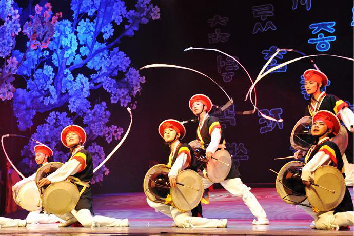 其實朝鮮族的打擊樂發(fā)展歷史源遠(yuǎn)流長。我國民族打擊樂眾多,特征各異,各民族的打擊樂特征又連接著本民族的其他音樂。朝鮮族音樂文化的產(chǎn)生與發(fā)展相當(dāng)古老,朝鮮族打擊樂與音樂形式多種多樣,有各種類型,如“盤坐式四物樂”、“游走式四物樂”、“立鼓”等等,而四物樂是朝鮮族具有代表性的打擊器樂組合之一。