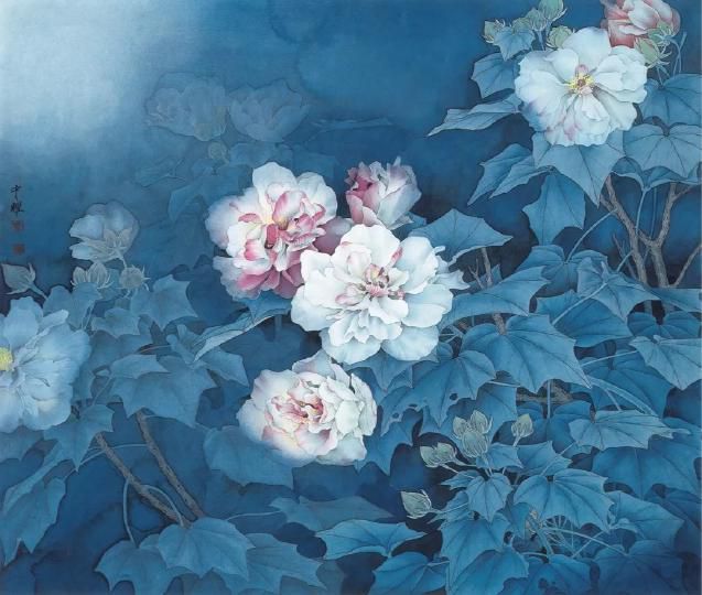 這些傳統(tǒng)技法既長于刺繡花鳥蟲魚等細膩的工筆,又善于表現(xiàn)氣勢磅礴的山水圖景,刻劃人物形象也逼真?zhèn)魃瘛?/p>