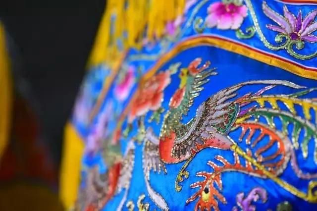 龍鳳褂裙,為女子出嫁與善終之時所穿之物。本作品采用精細金銀線配以潮繡墊高技法,繡制龍鳳圖案多達70余只,成為褂裙等級中的最高規(guī)格“褂王”。