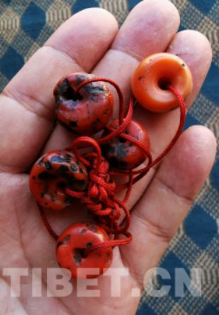 珊瑚在藏語中稱為“曲如”,在邊貿(mào)市場(chǎng)中的數(shù)量甚至多于綠松石,而且以真貨為主。其中原因,可能也主要在于制作普蘭當(dāng)?shù)胤椥枰约叭藗兿矚g將其作為戴在脖子上的項(xiàng)鏈飾品的緣故。