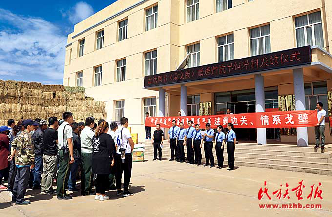 阿拉善盟檢察分院的“法到邊關(guān)、情系戈壁”《普法宣傳教育叢書(蒙古文)》贈送暨抗旱救災飼草料發(fā)放儀式。