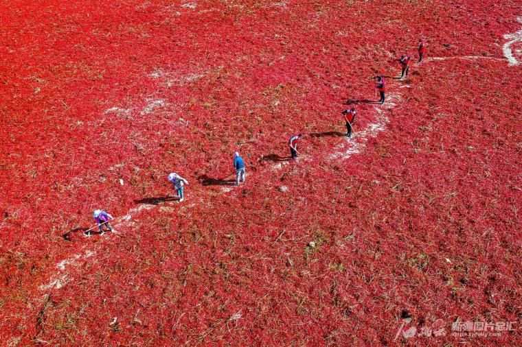 10月10日,農(nóng)民在晾曬辣椒。眼下,哈密?chē)?guó)家農(nóng)業(yè)科技園區(qū)千余畝線辣椒喜獲豐收。今年,哈密?chē)?guó)家農(nóng)業(yè)科技園區(qū)以政府引導(dǎo)、合作社牽頭的模式調(diào)整產(chǎn)業(yè)結(jié)構(gòu),引種用水省、效益高的訂單辣椒,助力農(nóng)民增收致富。李華攝