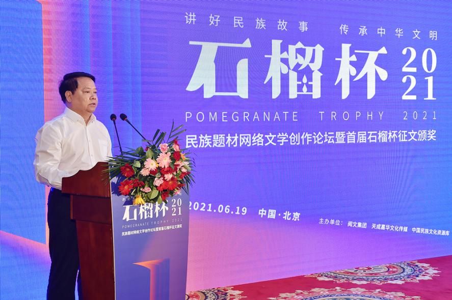 6月19日,民族題材網絡文學創(chuàng)作論壇暨首屆石榴杯征文大賽頒獎典禮在京舉行。作為國家民委主辦的“中華民族全家?!毕盗谢顒又唬讓檬癖魑拇筚惖玫搅藝颐裎幕麄魉竞椭袊贁?shù)民族文化藝術促進會的指導與支持,由閱文集團聯(lián)合天成嘉華文化傳媒、中國民族文化資源庫、中國民族文化資源網共同舉辦。本屆大賽以“講好民族故事 ,傳承中華文明”為主題,涌現(xiàn)出眾多弘揚民族精神、表達文化自信、傳播正能量的作品。經過專家推薦及嚴格評審,《草原有座蒙古包》、《走西口之天山行》、《彩云微光》等三部作品獲“最具民族風采獎”,《神藏》、《歡想世界》、《爛柯棋緣》、《時光和你都很美》、《恰似寒光遇驕陽》、《黎明醫(yī)生》、《暖君》、《驚雷》、《大訟師》、《消防英雄》等十部作品獲“優(yōu)秀作品獎”。所有獲獎作品都將收錄入中國民族文化資源庫。中國作家協(xié)會副主席、書記處書記吉狄馬加表示,本屆石榴杯大賽是在黨和國家長期以來堅持的對民族文化、少數(shù)民族作家創(chuàng)作和民族題材創(chuàng)作的大力扶持下,依托網絡文學平臺,將文學作品與影視作品改編、游戲、動漫產品制作結合起來,探索的一條發(fā)展民族文化的新路,具有開創(chuàng)意義。