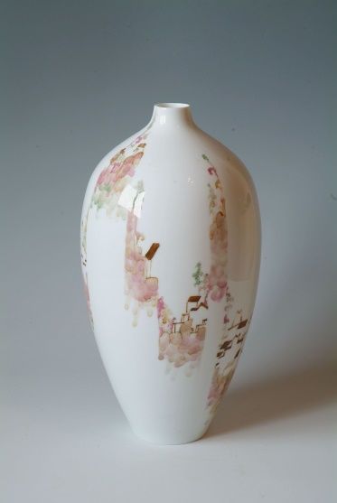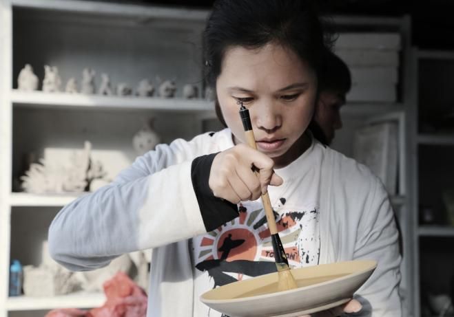 2008年在湖南醴陵進行釉下彩繪創(chuàng)作