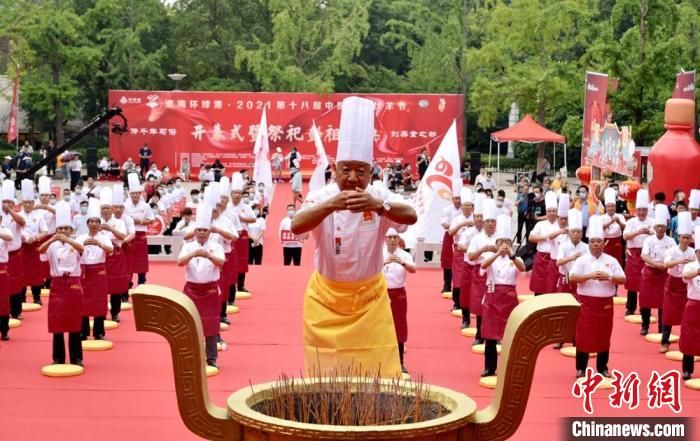 11日上午,2021第十八屆中國(guó)彭祖伏羊節(jié)在江蘇徐州彭祖園舉行開幕式,徐州當(dāng)?shù)卦俅纬尸F(xiàn)一年一度的“萬(wàn)人空巷吃伏羊”民俗奇觀。作為中國(guó)彭祖伏羊節(jié)開幕式的重頭戲,來(lái)自全國(guó)各地?cái)?shù)百名烹飪大師再次齊聚彭祖祠共同祭拜華夏烹飪鼻祖彭祖。烹飪大師們統(tǒng)一著裝,整齊列隊(duì),行叩拜大禮,聲勢(shì)浩大,莊嚴(yán)肅穆,十分壯觀。