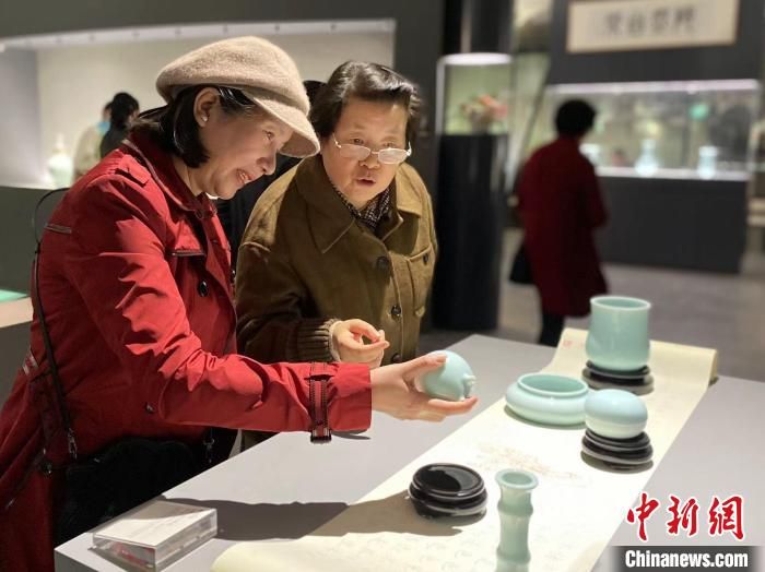 當(dāng)日展出的青瓷作品?!″X(qián)晨菲 攝