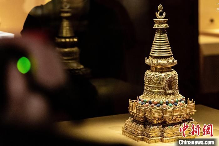 藏傳佛教法器金嵌松石佛塔?!∈烂=z館供圖