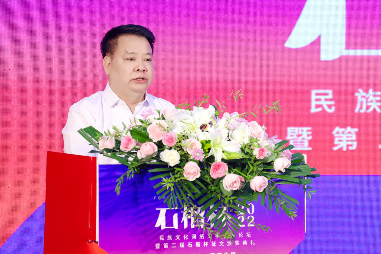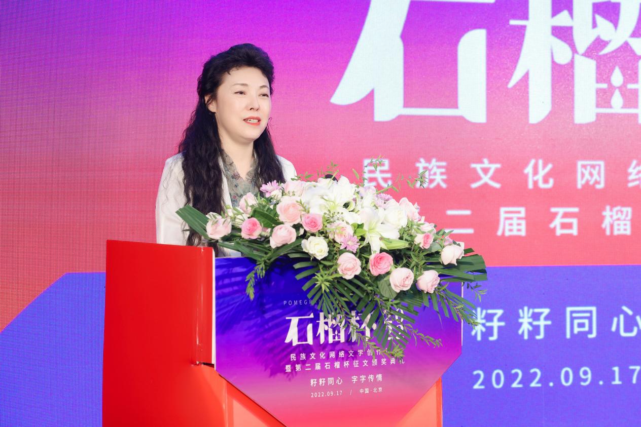 2022年9月17日,民族文化網(wǎng)絡(luò)文學(xué)創(chuàng)作論壇暨第二屆石榴杯征文頒獎(jiǎng)活動(dòng)在民族文化宮舉行。本次活動(dòng)得到了國家民委所屬中國少數(shù)民族文化藝術(shù)促進(jìn)會和中國紀(jì)實(shí)文學(xué)研究會的指導(dǎo)與支持,由閱文集團(tuán)、北京天成嘉華文化傳媒主辦,天成達(dá)星國際傳媒承辦。