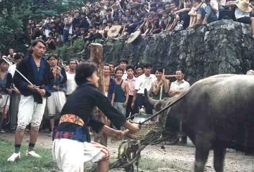 在南丹縣八圩、里湖瑤族鄉(xiāng)等地聚居著瑤族的一個支系——白褲瑤,因白褲瑤至今沿襲著古老的生活習(xí)俗,有著“人類文明活化石”之稱,特別是喪葬文化中的“砍牛”儀式,更是充滿著神秘色彩。