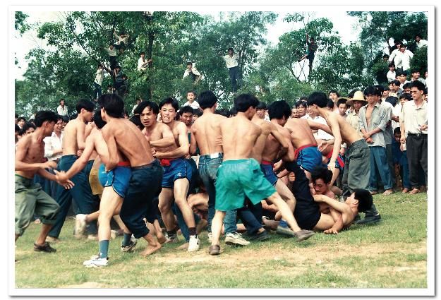待賀節(jié)隊(duì)回到主會(huì)場(chǎng),花炮節(jié)正式開始,首先是舞獅表演,接著蘆笙、卡羅舞表演,斗馬、斗鳥以及賽馬等活動(dòng)各自展開。這些活動(dòng)告一段落后,最精彩的節(jié)目——搶花炮開始了,人們像潮水般涌向主席臺(tái)前,圍成一個(gè)幾十個(gè)平方米的空地作搶花炮場(chǎng)地。搶花炮分一、二、三等,搶三次,得勝者,抬著漂亮的花炮頭及獎(jiǎng)品興高采烈地回村了。