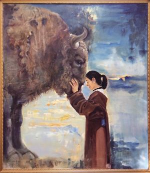 “畫上的牛實際是我家的一頭老耕牛,名字叫拉洽。它是我們的家庭成員,在收割完青稞的時節(jié),安詳?shù)仉x開了人世。”雍忠卓瑪用畫筆定格了自己和拉洽惺惺相惜的一幕,這幅作品也感動了西藏牦牛博物館館長吳雨初,后被該館收藏,這也成為舉辦畫展的肇始。