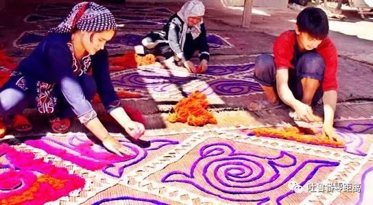 試想,一處古老的維吾爾族院落里,土質(zhì)的院墻和房子將一家人聚攏在一起,走進(jìn)這家人的客廳,整潔而舒適,印花布的身影隨處可見(jiàn):長(zhǎng)條形的藍(lán)色印花布作為床圍;?一張方形的印花布被鋪在桌子上?與餐盤(pán)、茶具相互映襯,?恬靜和諧;?坐墊套、窗簾……?印花布的身影無(wú)處不在,點(diǎn)點(diǎn)滴滴地點(diǎn)綴著這家居室,也將女主人的心靈手巧表現(xiàn)得淋漓盡致。?這是怎樣一幅遠(yuǎn)古家庭的生活場(chǎng)景???