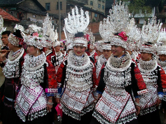 貴州施洞苗族銀飾鍛造歷史悠久,銀飾工藝精湛,工藝品主要有銀角、銀冠、銀花、銀簪、銀梳、銀插針、銀耳柱、銀耳墜、銀項(xiàng)圈、手鐲,花片和銀鈴等等。施洞的銀飾全部用純銀制作,純度達(dá)97%以上,穿戴起來顯得十分亮麗和貴重。施洞的盛裝在世上可堪稱一絕,銀飾現(xiàn)已成為裝飾品、藝術(shù)品、美的標(biāo)志、富有的象征。施洞鎮(zhèn)專門從事銀飾制作的有200余戶,所生產(chǎn)的銀飾品暢銷國(guó)內(nèi)外,成為主要的經(jīng)濟(jì)來源。