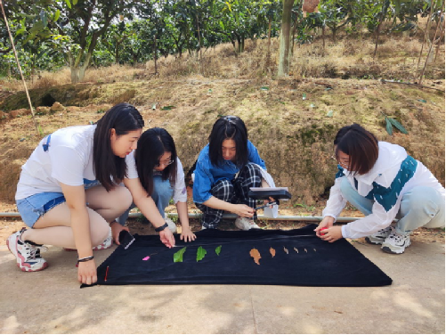 一是恩樂鎮(zhèn)復(fù)興村晚熟芒果基地調(diào)研。9月3日上午實踐團(tuán)前往恩樂鎮(zhèn)復(fù)興村晚熟芒果基地考察,了解該基地的主要栽培品種,提出當(dāng)?shù)孛⒐耘嗟膬?yōu)勢及目前亟需解決的問題,并為農(nóng)戶進(jìn)行相關(guān)栽培技術(shù)的講解,為當(dāng)?shù)赝硎烀⒐?xì)化管理提供技術(shù)支撐。同時實踐團(tuán)選取不同海拔生長旺盛、豐產(chǎn)、穩(wěn)產(chǎn)的成年樹,隨機(jī)采摘果形均勻、健康飽滿、無機(jī)械損傷和病蟲害的成熟果,以及套上不同果袋子的果實,如白袋、紅袋和黃袋,所有樣品采摘后立即送回實驗室,對其單果重,果實縱徑、橫徑、厚度、總可溶性固形物、果形指數(shù)及風(fēng)味等綜合性狀進(jìn)行測定,探究不同海拔和果袋對芒果果實品質(zhì)的影響,以期為生產(chǎn)實踐提供理論指導(dǎo),提高果實品質(zhì)。
