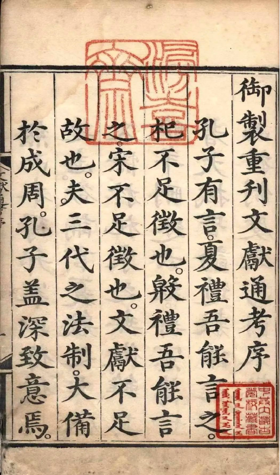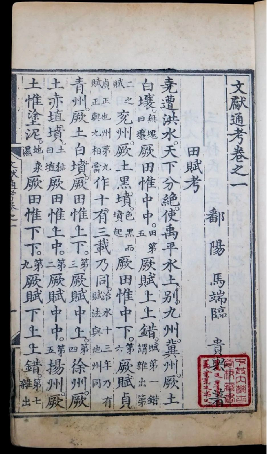 《文獻(xiàn)通考》所述歷代典章制度,上起上古,下至南宋寧宗嘉定末年。該書立目參照《通典》,并有所發(fā)展。全書分為二十四考,每一考前有小序,說明著述的成規(guī),考訂的新意,每考之下又分為若干子目,子目?jī)?nèi)容皆按時(shí)間先后排列。撰寫體例是按文、獻(xiàn)、考三個(gè)層次排列,凡頂格排行者,即所謂“文”,也就是“敘事”部分。凡低一格排行者,即所謂的“獻(xiàn)”,也就是“論事”部分。凡低兩格排行者,即所謂“考”,也就是作者自己的議論,其內(nèi)容包括指點(diǎn)歷史演變的線索、評(píng)判是非、考辨史料和解釋名物等。