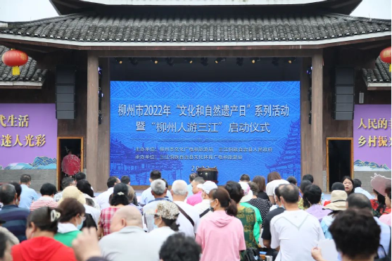 6月11日,廣西三江縣月也侗寨一早就蘆笙吹奏,琵琶彈唱,人頭攢動,熱鬧非凡。今天是以“連接現(xiàn)代生活 綻放迷人光彩”為主題的2022年柳州市“文化和自然遺產(chǎn)日”啟動儀式暨“柳州人游三江”啟動儀式。