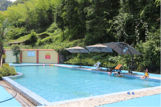 大人們在青山綠水間泡溫泉、賞風(fēng)景,孩子們在兒童水上樂園嬉戲玩鬧,中晚飯點時在農(nóng)家樂里吃著當(dāng)?shù)亓魉B(yǎng)殖的生態(tài)魚,體驗著鄉(xiāng)村風(fēng)情,舒適愜意遍布全身。