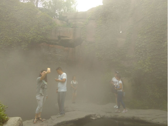 人們不期而遇的步伐、眼神和享受,心照不宣,現(xiàn)在人們重視外出活動,與山相隨,與花共舞,與自然接觸,如心靈瞬間注入水珠一般叮咚作響,無限的遐思似乎要占領(lǐng)整個世界,聽:人工假山中悠悠的吶喊聲和飛流直下的瀑布遙相呼應(yīng)著,伴著一股股的霧氣、人流,如入仙境一般,云里霧里??矗汗珗@里站在花叢中的微笑與微笑相互對視著,靜謐中跳動的旋律和人在游途中溫馨的場景交織在一起,構(gòu)成了一幅美麗的畫卷。