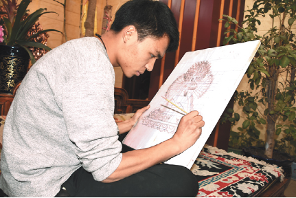 技藝上的登峰造極,次嘎把這一秘笈歸結(jié)成幾個平常的字眼:“興趣和堅持”。從小受家族文化的熏陶,兩個兒子對傳統(tǒng)文化有著濃厚的興趣。薪火相傳也成了次嘎肩上的責(zé)任。20出頭的大兒子扎西拉達穿著白T恤,皮膚白皙、手指纖長、陽光帥氣,立志要子承父業(yè)?!案赣H告訴我即便是要做一名手工藝人,也不能放棄對文化知識的學(xué)習(xí),從小便把我送到內(nèi)地學(xué)習(xí)?,F(xiàn)在,我長大了,該回來了?!?扎西拉達的話語堅定。