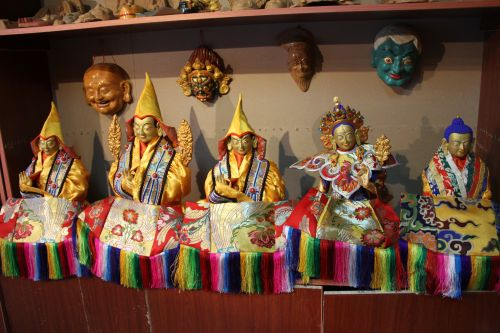 在普布次仁所在的公司里,有一個(gè)專門用來制作泥塑面具的房子,從外表上看去,它只是一個(gè)普普通通的藏式民居,但走進(jìn)其中,則別有一番天地。在房間里整齊擺放了大大小小的泥塑面具、佛像,這些手工藝品造型生動,每一件手工藝品仿佛都在訴說著一個(gè)古老、動人的故事。