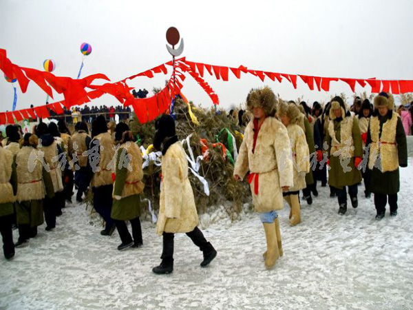 “祭湖”儀式的場面非常壯觀,并帶有幾分神秘的色彩。按照歷代沿襲下來的習(xí)俗,查干湖漁獵必須由當(dāng)?shù)氐?高望重的“魚把頭”主持儀式,舉行祭祀湖神,喚醒冬網(wǎng),祭拜天父地母,保佑萬物生靈永續(xù)繁衍,百姓生活幸福安康。在冰面上,擺放糖塊、炒米、水果、奶干等供品,點(diǎn)燃香火、炭火鍋,進(jìn)行誦經(jīng)祝辭,祝愿漁獵平平安安,多出 魚出好魚。