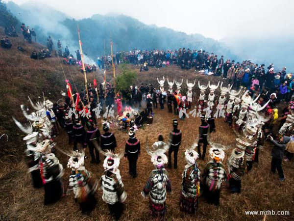 “招龍節(jié)”是苗族同胞特有的節(jié)日,屆時舉行隆重的招龍祭祀儀式,人們希望通過這儀式把龍和祖先的靈魂招回,保佑村寨風(fēng)調(diào)雨順,五谷豐登,人畜平安。一般在十三年的農(nóng)歷二月辰日舉行。