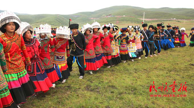 盛裝的彝族青年男女舞動(dòng)起來