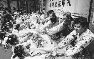 朝鮮族自古以來就有尊重老人的美德,把尊重老人視為家庭乃至整個(gè)社會(huì)生活中的重要禮節(jié)。為慶祝老人年滿60周歲而舉辦的“花甲宴”、70周歲的“稀壽宴”、80周歲的“傘壽宴”,都是朝鮮族家庭極為重視的活動(dòng)。