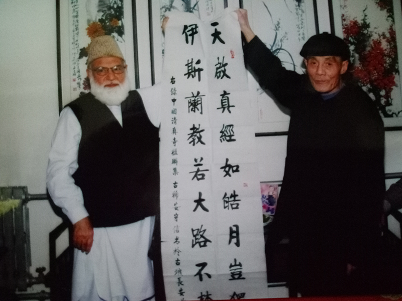李殿君出生于一個虔誠的穆斯林家庭,自幼在本村私塾學(xué)習(xí)儒學(xué),13歲開始學(xué)習(xí)伊斯蘭教知識。17歲負(fù)芨陜西嵐皋縣,跟隨周文卿阿訇學(xué)習(xí)。5年后他又到寧夏的吳忠中阿高級講習(xí)所學(xué)習(xí)經(jīng)文典籍和漢語。抗日戰(zhàn)爭時期,李殿君擔(dān)任河南瓦店清真寺阿訇,為中共地下黨保存過大量現(xiàn)金和物資,曾冒著生命危險幫助當(dāng)時的地下黨員擺脫敵人的追捕,為此他失去了女兒。1955年,人民政府派他前往江西省九江清真寺任阿訇。在這期間,李殿君帶領(lǐng)宗教人士協(xié)助政府積極參與抗洪救災(zāi),為此受到毛澤東主席的親切接見。提到往事,老人很興奮。他告訴我們,毛主席和他交談了40分鐘。在“文革”期間,他雖然受到不公對待,深陷囹圄,但始終堅(jiān)守信仰,愛國愛教,受到穆斯林群眾的尊敬愛戴。
