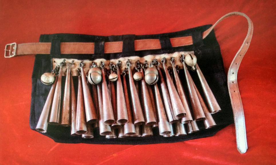 牛角,用黃牛犄角制成,音色渾厚悠揚,最初是狩獵時的進攻信號,后曾廣泛用于戰(zhàn)場。