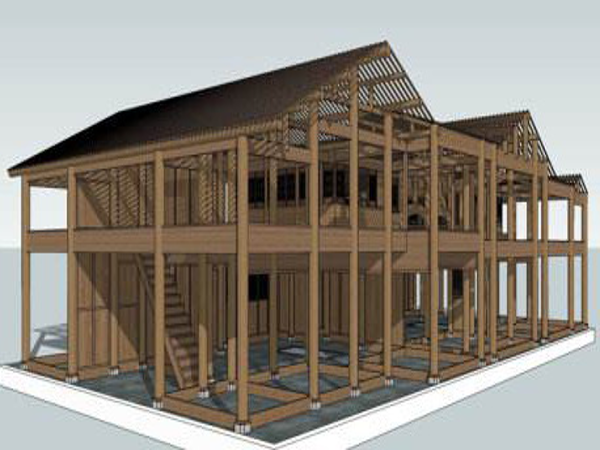 傣族人民多居住在平壩地區(qū),常年無雪,雨量充沛,年平均溫度達21℃,沒有四季的區(qū)分,干欄式建筑是很合適這種環(huán)境。竹樓用各種竹料(或木料)穿斗在一起,互相牽扯,結構極為牢固。