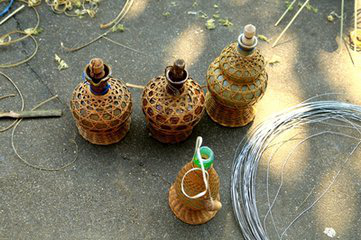 傣族竹編歷史悠久,制作精美,品種豐富,它與傣族人家生活息息相關(guān),是了解傣族文化不能缺少的一部分。對(duì)于傣族竹編來講,以編織工藝不同,可以把傣族竹編分為薄篾層編織出平面圖形的平面竹編;用橫截面為矩形的竹絲編織立體造型的立體竹編;將平面竹編和立體竹編編織工藝糅合在一起,編制成既有平面質(zhì)感又有立體形狀的混合竹編。傣族竹編是藝術(shù)創(chuàng)作和藝術(shù)再創(chuàng)作,竹編工藝品可分為粗絲工藝品和細(xì)絲工藝品。粗絲竹編工藝品主要有茶杯、糖缸、飯盒、檳榔盒、茶葉罐等,細(xì)絲竹編工藝品主要有竹包手袋、挎包和帽子等,它們集實(shí)用和觀賞性于一體。例如傣族的“芭蘿”,“芭蘿”是傣族,是一種掛在腰間的竹簍?!鞍盘}”編織精巧,美觀實(shí)用,不僅是生產(chǎn)、生活用具,還是精致的裝飾品,還是傣族青年表達(dá)愛情的傳遞物。