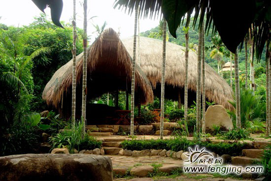黎族傳統(tǒng)民居是用藤條、樹枝、木棍扎制屋架,茅草覆頂,以藤條或竹做地板,離地約半公尺左右。屋檐接地,檐墻合一,遠(yuǎn)看像倒扣的船,因而被稱為船形屋。