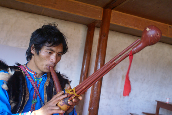 傈僳族民間器樂藝術(shù)具有獨特的民族風格和特色,在傈僳族民間音樂中有重要地位。其種類主要有琵琶(劉軍攝)、口弦、竹笛、葉笛、葫蘆笙(劉軍攝)、二胡等。