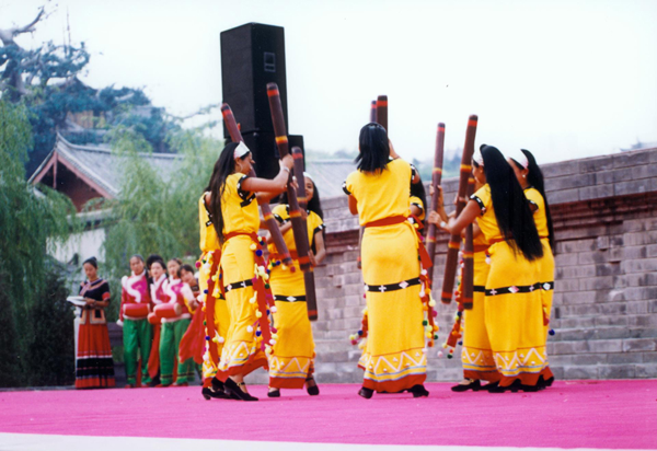 打擊樂:有象腳鼓、竹筒鼓、銅鼓、鑼、芒、镲、木鼓。舊時,木鼓不是樂器,而是人與神之間求應(yīng)的媒介,是佤族最崇拜的神物。現(xiàn)在,木鼓已被作為文娛活動的打擊樂器。西盟縣木鼓舞獨具特色,國內(nèi)外聞名。