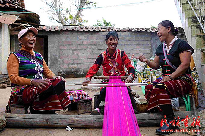 農(nóng)閑的時候,娜巴來總是和兩位表姐一起編織美好的致富夢想。她說:“一有空,我們就一起織布賣包包,最近我已經(jīng)織出8個包包了,一個能賣100塊錢,夠買回兩只小豬仔了?!?/p>
