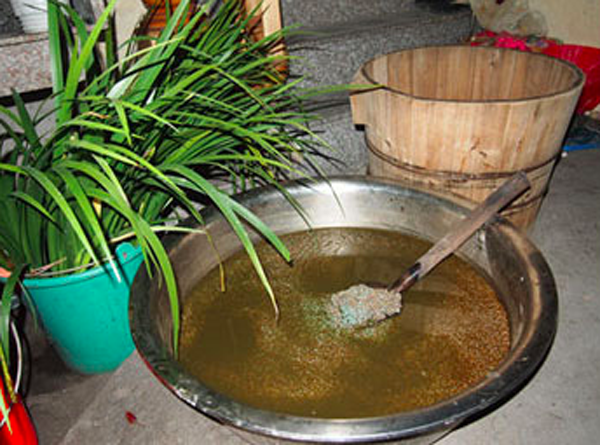 用烏稔樹葉的汁水浸泡糯米