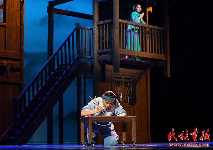 2017年12月28日,來自貴州的首部水族題材舞劇《木樓古歌》在民族劇院上演。舞劇中弘揚的至純至善的品質(zhì)和捍衛(wèi)家國尊嚴的勇氣、跌宕起伏的劇情和演員們嫻熟到位的表演以及神秘新鮮的民族文化符號,都深深感染著首都觀眾?!赌緲枪鸥琛酚酶哌h的立意和高超的藝術(shù)水準為北京歲末的演出畫上了圓滿的句號。