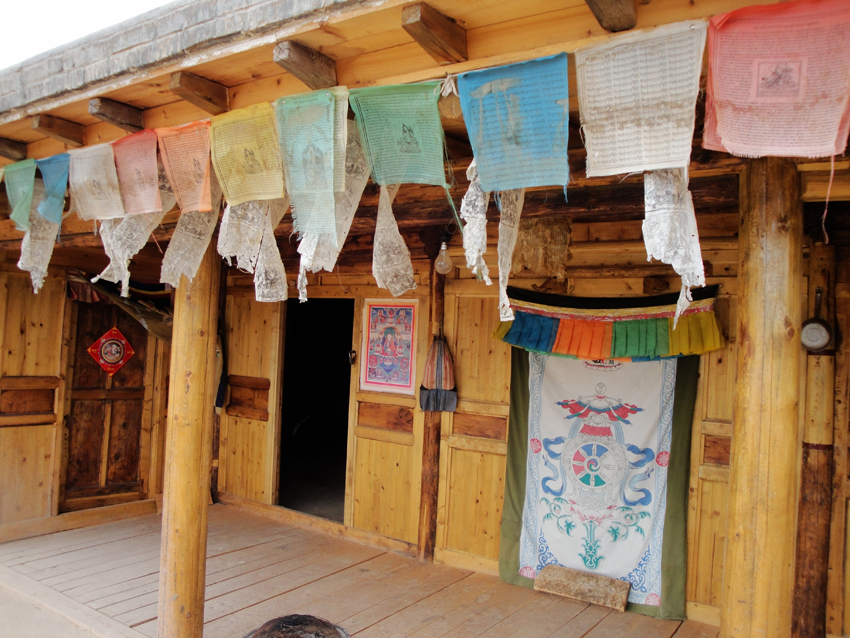 主房多用來供神,中堂擺一堆大紅面柜,上置吉祥箭、佛龕或其他供器。廚房鍋灶或案板上方為灶神之位。屋內(nèi)陳設家居有衣柜、貨架、面柜、沙炕、木板炕、打泥炕。有一種俗稱“鍋臺連炕”的打泥炕,土語稱“禿光”,是一種與鍋臺連在一起的土炕。土族人把廚房設在東房,鍋臺筑在居中的一間里,緊挨鍋臺(忌坐西向東)后面的一間房里盤上打泥炕。在灶與炕之間砌一堵矮土墻,叫“攔炕”,煙道經(jīng)過炕下后才能通往煙囪。平時做飯、燒水時,余熱可使土炕變得暖烘烘的,可謂一舉兩得。平時,炕上不鋪氈,上炕不脫鞋,一家老小都坐在炕上吃飯、休息。如果有客人來,則要鋪上氈讓客人坐在上方。