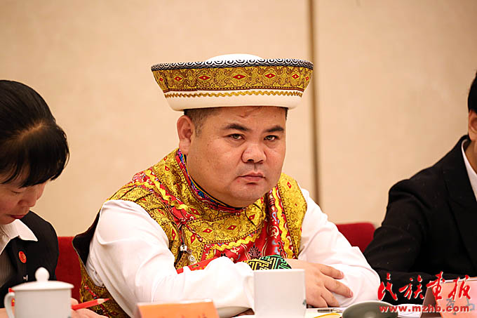 十九大代表、青海省互助土族自治縣林川鄉(xiāng)黨委書記李占魁(土族)在青海省代表團(tuán)討論會(huì)上發(fā)言 (滕俊 攝影)