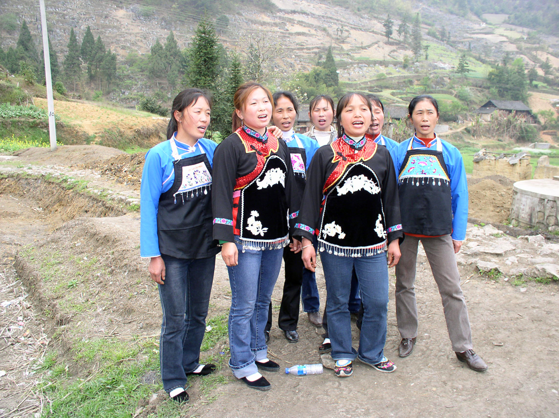 “比”和“歡”主要用來抒。按內(nèi)容來說,“比”多唱苦歌,“歡”多唱祝賀歌、儀式歌?!氨取焙汀皻g”均為同聲二重唱的二聲部山歌,且多為短歌。