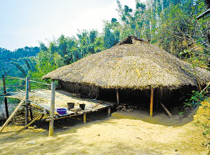 云南省潞西市三臺山鄉(xiāng)的德昂族居住分散,村寨很小,大都建在高半山上,山路行車困難。傳統(tǒng)住房為正方形干欄...