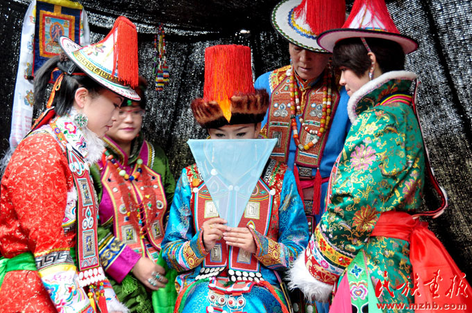包辦婚姻與漢族相似,正式婚禮過程中有提親、訂婚、戴頭面、送親、打尖、踏房、射箭、堯達曲格爾等一系列古...
